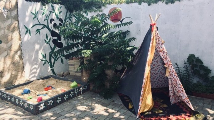 На территории дома летняя кухня, мангал, стиральная машина, утюг, песочница.