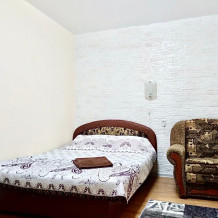 В номере все удобства: двухспальная кровать + 2 дополнительных места, шкаф, кабельное TV (плазма), Wi-Fi (бесплатно), кондиционер, утюг, теплый пол (вариант зимнего проживания). Оборудованная всем необходимым кухня. Стиральная машина-автомат. Место для стоянки автомобилей во дворе дома.