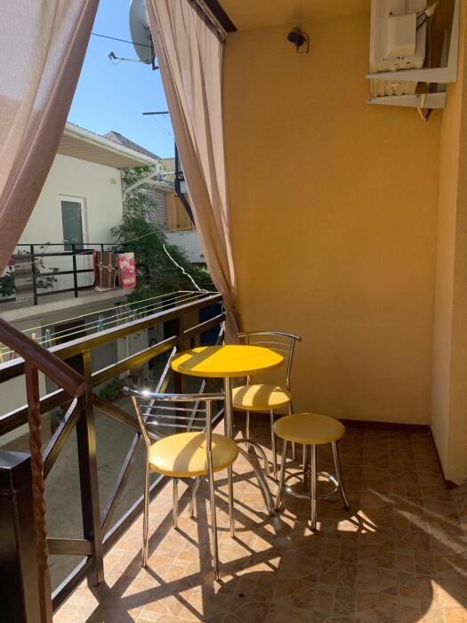 В стоимость номера входит постельное бельё и полотенца по количеству проживающих. Вид с номера - во двор (на тихую улочку без машин). Наша визитная карточка - смотровая площадка: с шезлонгами и видом на море, горы и весь посёлок (общая для наших номеров). До моря - 500 метров, приблизительно 6 минут неспешным шагом. Путь к морю через парковую можжевеловую зону по тенистой аллее с лавками.