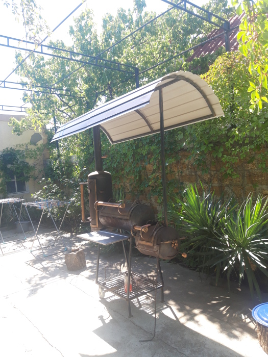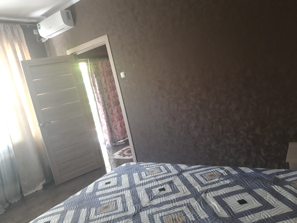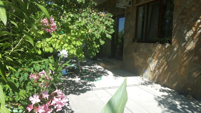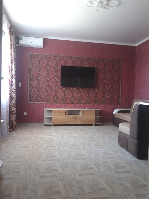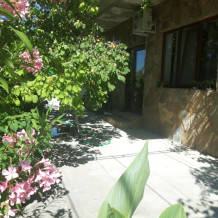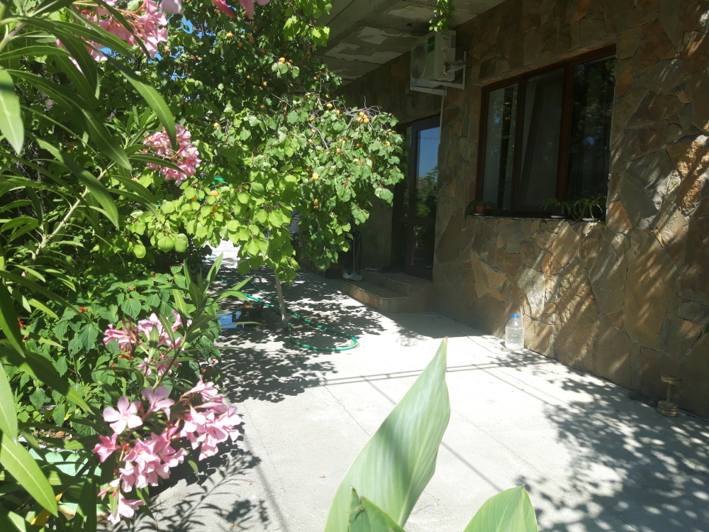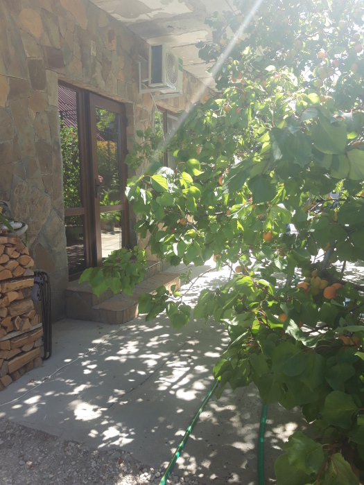 Двухкомнатные, красивые, благоустроенные апартаменты на 1 этаже, на 1-4 человека со столиком и стульями в тени под большим абрикосом во дворе и большой красивой беседкой в винодельческом стиле вся в цветах и винограде. Комнаты изолированные: спальня и гостиная студия, новая мебель, индукционная кухонная плита, большой холодильник, совмещённый санузел, душевая кабина, автомат. стиральная машинка, горячая и холодная вода всегда, 2 кондиционера, 2 TV, wi-fi, окна - на зелёный дворик.