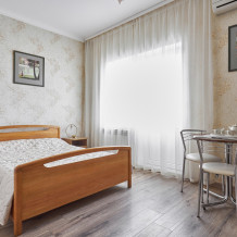 Дом вмещает в себя всего 6 номеров, поэтому мы и обеспечиваем тишину и покой для наших постояльцев. Все номера оборудованы телевизором, холодильником, кондиционером и санузлом.