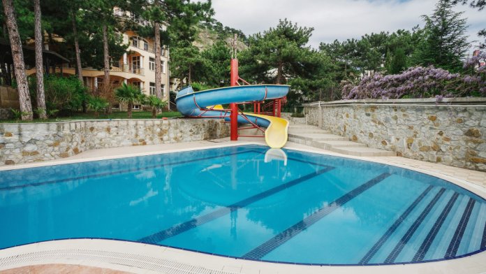 · Открытый плавательный бассейн 15х7 м с водной горкой длиной 24 м и высотой 5м.