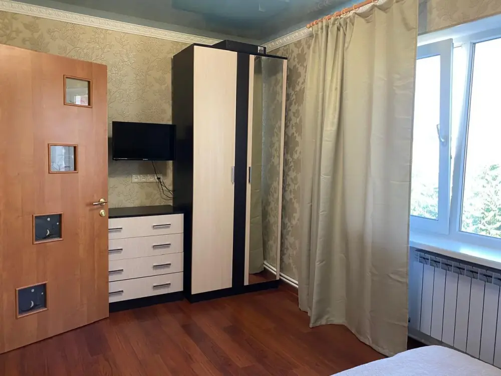Квартира расположена на втором этаже, евроремонт, есть всё необходимое для комфортного отдыха и проживания. В спальне большая кровать, шкаф, комод, ТВ. В зале диван-кровать, комод. На лоджии кровать. Кухня оборудована всем необходимым для самостоятельного приготовления пищи. Квартира с кондиционером, в ванной есть стиральная машинка.