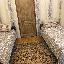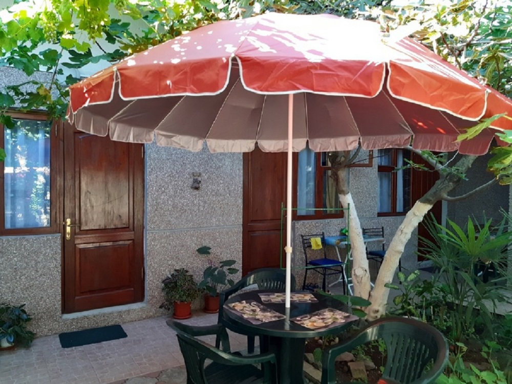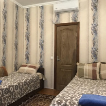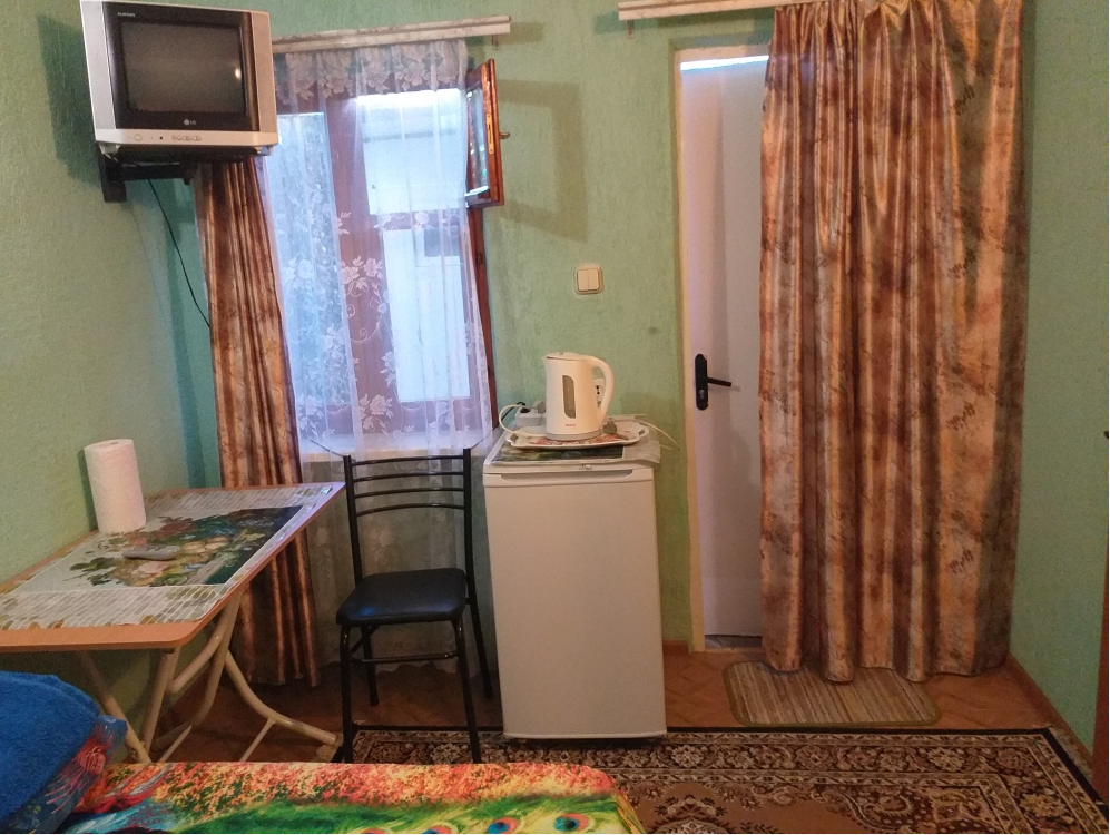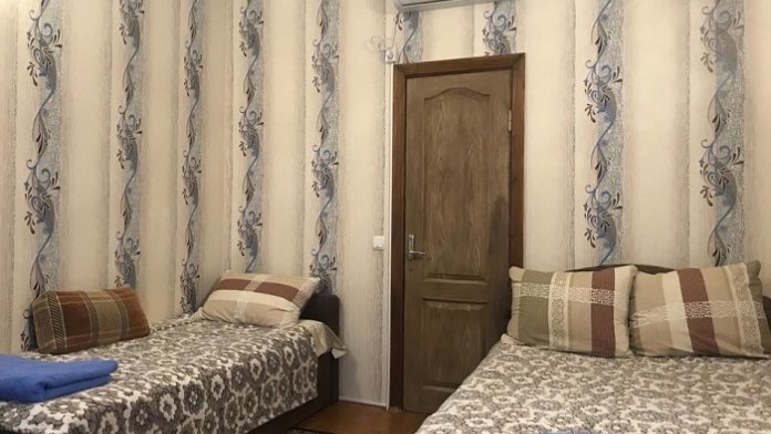 Гостевой дом предлагает для отдыха 5 номеров для размещения от 1 до 4 человек. В номерах есть всё необходимое для комфортного проживания: кондиционер, кровать, шкаф, телевизор, холодильник, электрочайник, санузел.