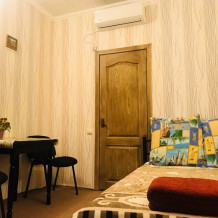 Это уютный однокомнатный номер с собственным санузлом, для размещения двух или трёх гостей. В номере есть всё необходимое для комфортного проживания: кондиционер, кровать одна двухспальная (ширина 1,40), кровать односпальная (ширина 80 см), шкаф, холодильник, стол, телевизор, электрочайник.