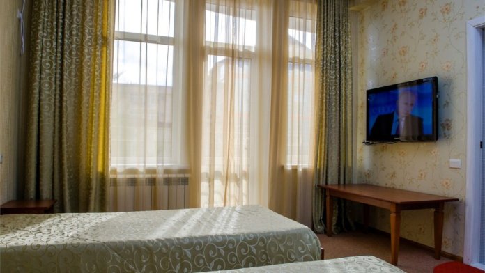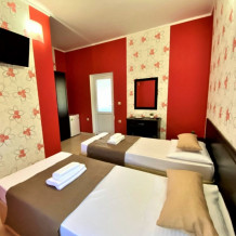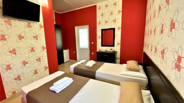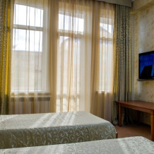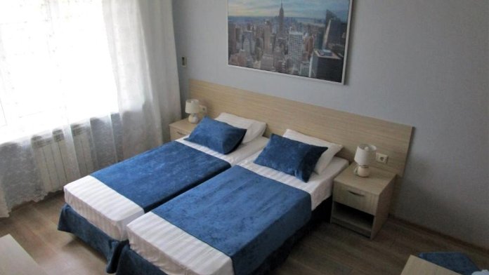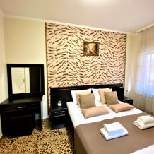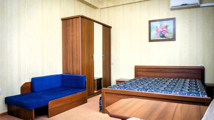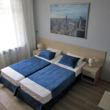 В номере: кровать duble или twin, телевизор, зеркало, кондиционер, гардероб, холодильник, стаканы, душ и санузел, пуфик, комплект полотенец, косметические принадлежности. Дополнительное место - еврораскладушка. Максимальное количество человек – 3.