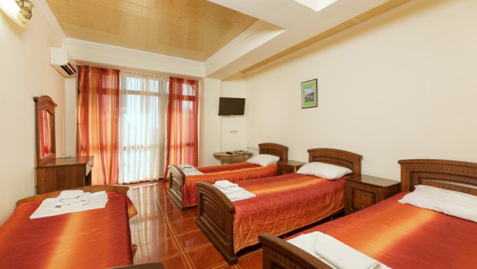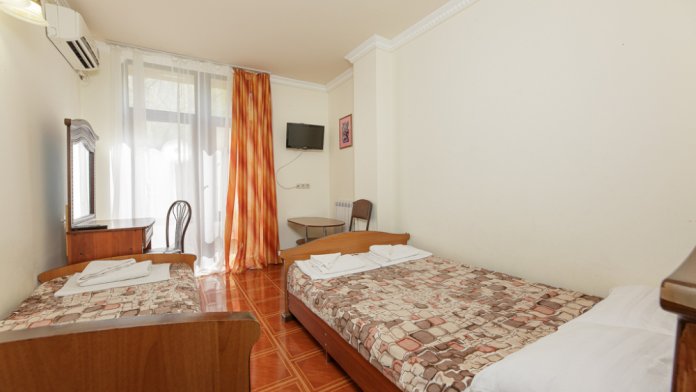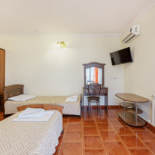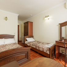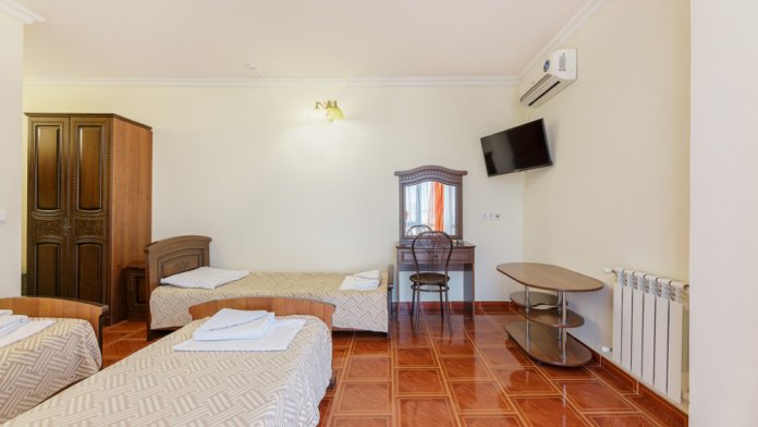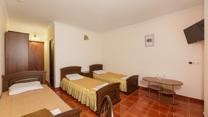 В номере могут быть 3 односпальные или двухспальная и односпальная кровати.