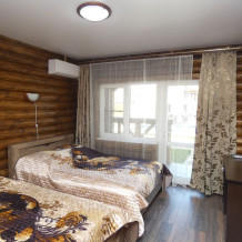 Мы предлагаем разместиться в наших новых, деревянных, удобных и экологически чистых номерах, в верхнем Джемете. Это уютные номера рассчитанные от 1 до 5 человек. Рядом с каждым номером имеется небольшая терраса с летней мебелью, где можно отлично провести время и насладиться свежим воздухом. Для большой семьи предлагаем 3-комнатные апартаменты с кухней, детской спальней и комнатой для родителей.