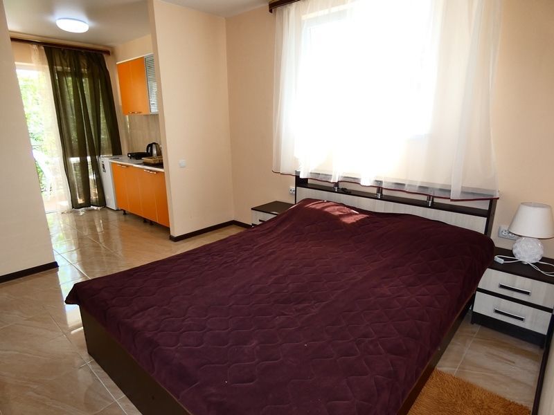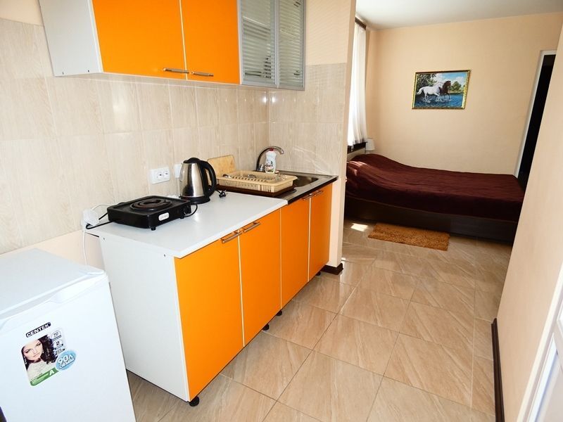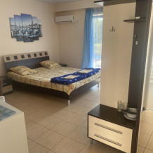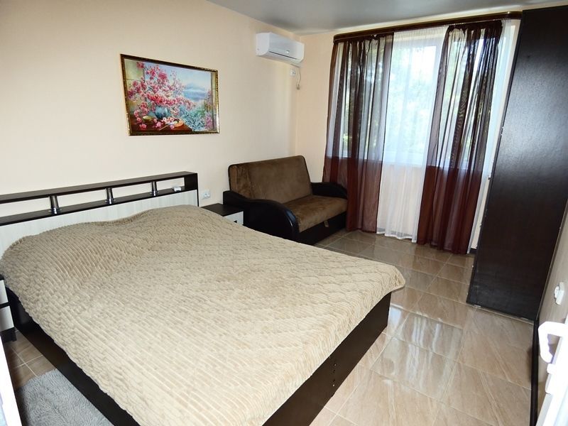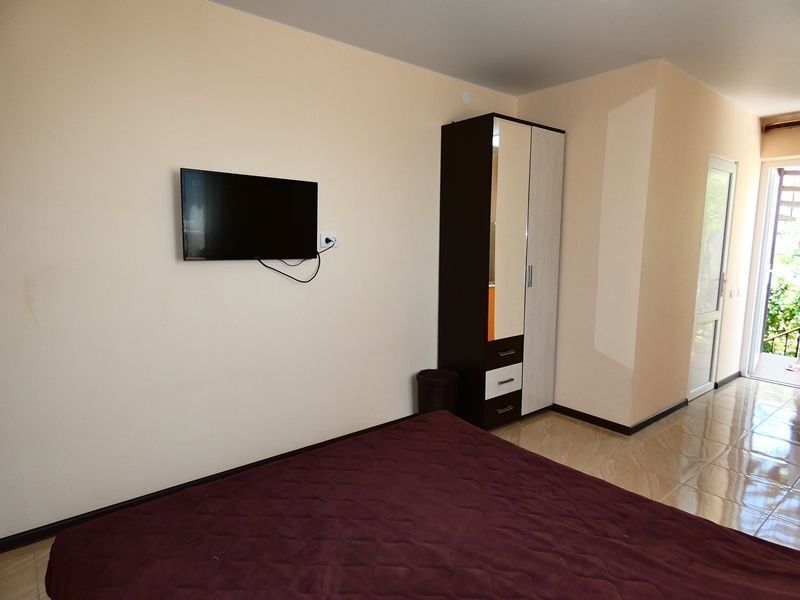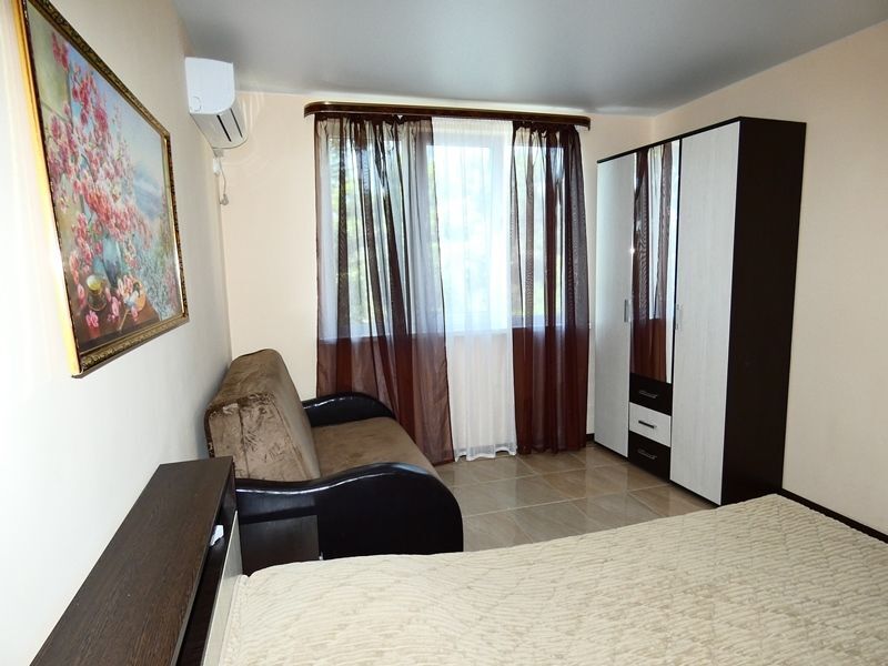 Комфортные двухкомнатные номера расположенные на первом и втором этаже (закрытого) сектора. В комнате есть кондиционер, телевизор, холодильник, мини-кухня, 2 двуспальные кровати, 1 раздвижной двуместный диван, гардеробная зона, посуда. На крыше сектора расположена зона отдыха с прекрасным видом на море, вулкан «Кара-Даг» и горы.