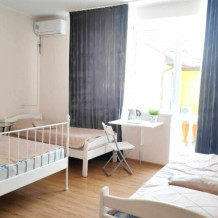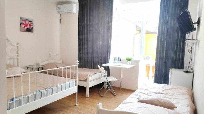 Территория гостевого дома огороженная, есть парковка для автомобилей, Wi-Fi, оборудованная всем необходимым общая кухня, где каждый желающий может хранить свои продукты и что-нибудь себе приготовить. Для проживания гостям предлагаются номера разной вместимости, со всем необходимым для комфортного отдыха.