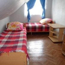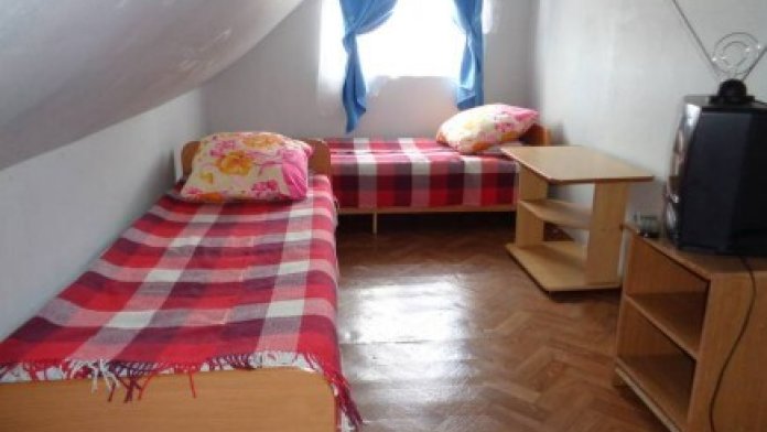 Скромный недорогой номер для одного-двух человек. Находится в мансардном помещении, нужно подняться по винтовой лестнице. Душ и туалет общие, в цоколе здания (2 душа и 2 туалета на 4 номера).