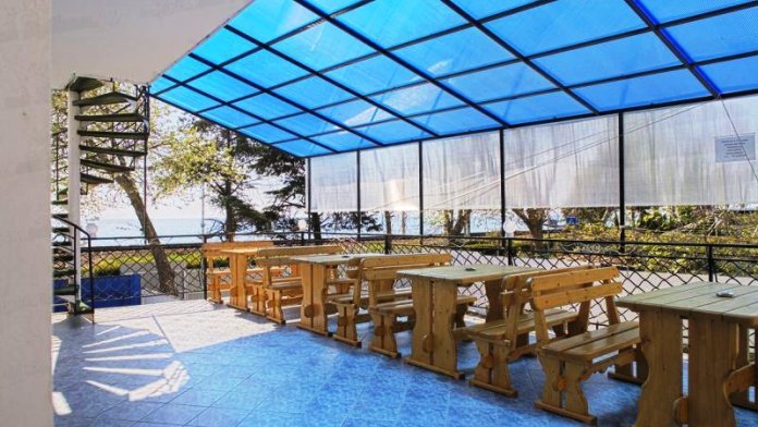 На территории имеется кухня для самостоятельного приготовления пищи, со всем необходимым, мангал, терраса с видом на море, автостоянка (платная), стиральная машина (платно), гладильная доска и утюг (бесплатно).