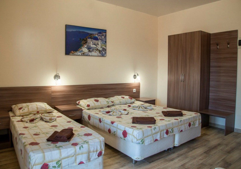 Уютный 3-местный номер с современной отделкой, продуманный для комфортного отдыха. В номере двуспальная и односпальные кровати Springbox, которые можно поставить как вместе, так и отдельно, шкаф для вещей, прикроватные тумбочки, столик и стулья.