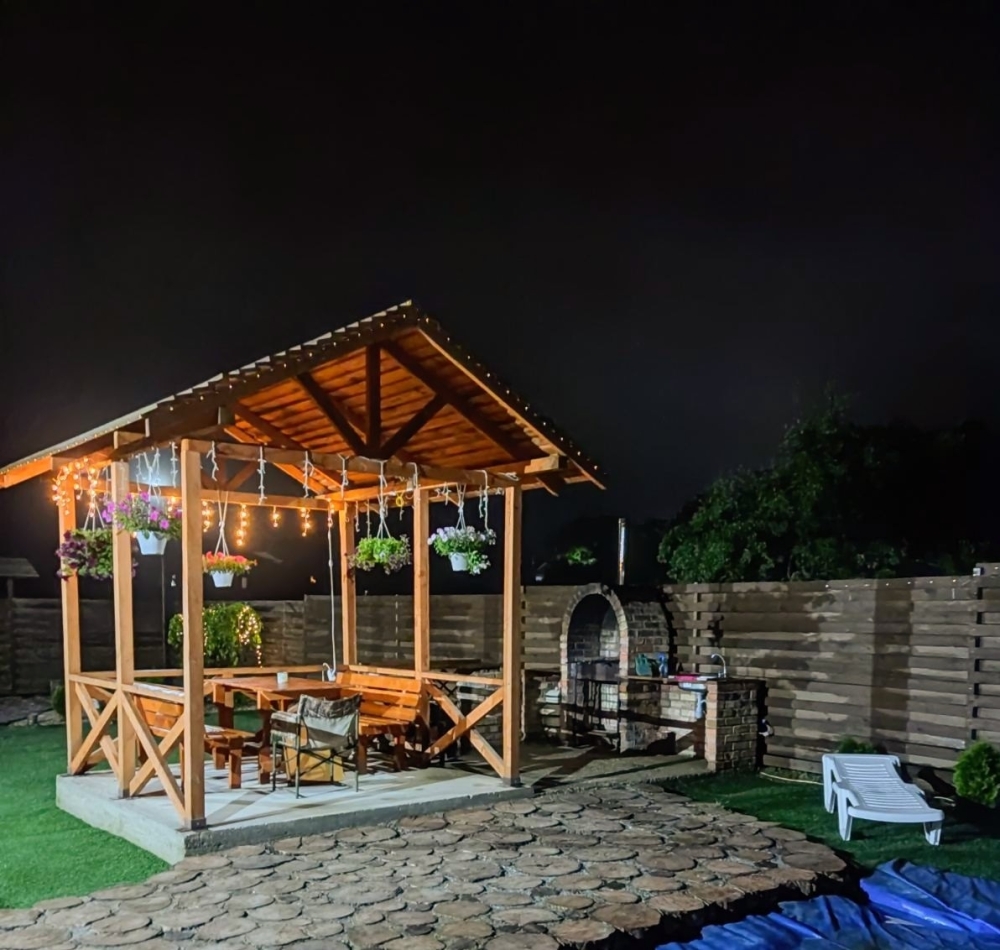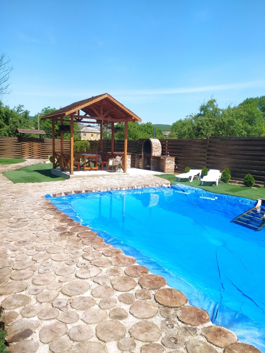На территории имеется: банька, кухня, бассейн, беседка, мангальная зона, тандыр. Широкий ассортимент домашних продуктов к Вашему столу. Баня на дровах и пруд для полного заряда бодростью.