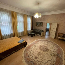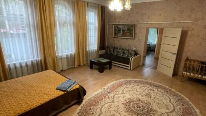 Площадь комнаты 33,5 кв.м. Кухня 11 кв. м. Квартира полностью укомплектована под круглогодичную посуточную сдачу отдыхащим. В пешей доступности множество санаториев, где отдыхающие могут приобретать процедуры.