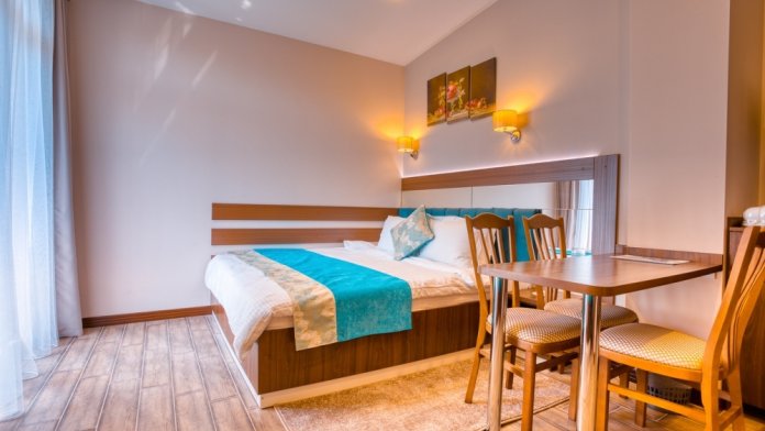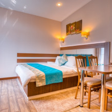 В номере 1 двуспальная кровать и 1 тахта (в которой используется полноценный ортопедические матрас).