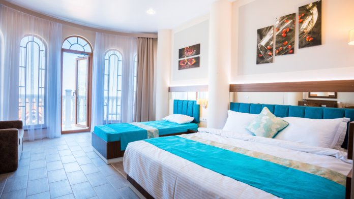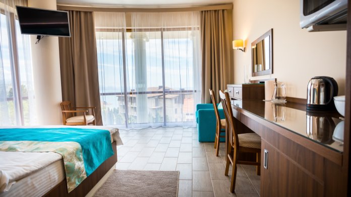 Компактный, но комфортный номер с небольшой балконом и частичным видом на море.