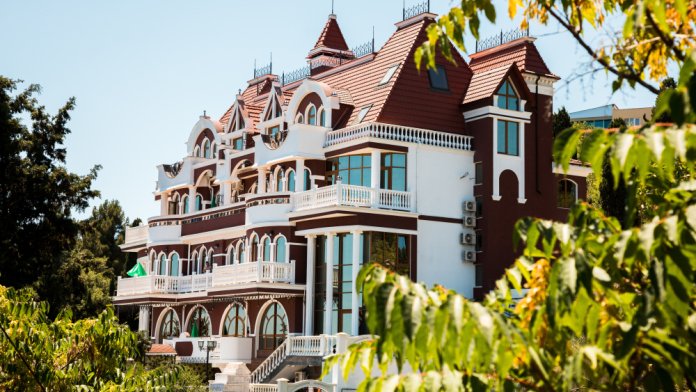 В одном цельном архитектурном комплексе расположены два объекта размещения, одним из которых является гостевого дома «Гранатовое Поместье», занимающий правое крыло здания (корпус А) и нижестоящее здание (Корпус Б). До набережной от поместья можно дойти за 7 минут, в пешей доступности: магазины, кафе, столовая, аквапарк и многое другое.