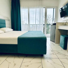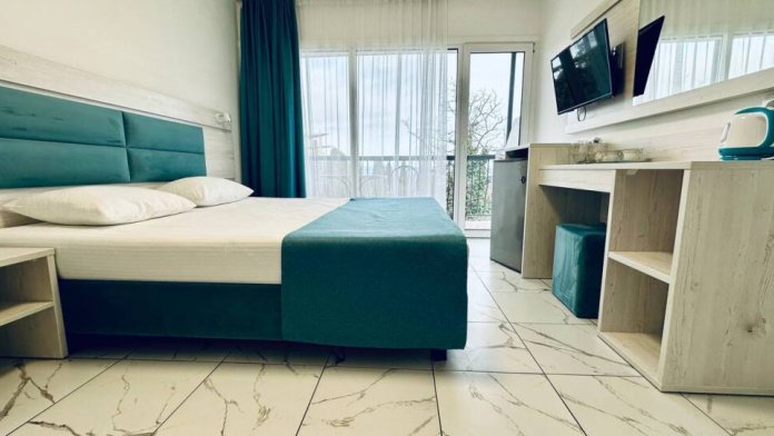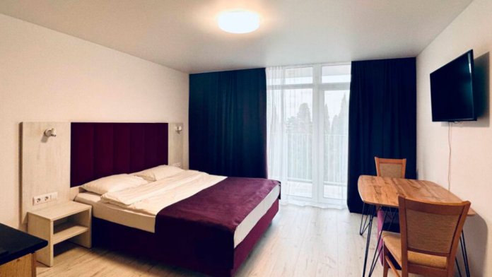 Все наши уютные номера (от двухместных до трехкомнатных апартаментов) оснащены современной мебелью, телевизорами ЖК, кондиционерами, а также есть номера с кухнями и все они не похожи друг на друга. Номера оснащены системой противопожарной безопасности и на территории ведется видеонаблюдения.