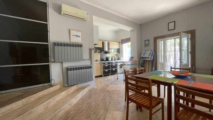 В доме четыре спальни, два санузла, просторная гостиная-кухня, а также есть все необходимое для комфортного проживания: стиральная машина, микроволновая печь, набор посуды, постельное бельё, полотенца, телевизор, кондиционер в гостиной, интернет. Спальные места: в первой спальне – двуспальная кровать, в смежной с ней спальне – двуспальная кровать, в другой, изолированной спальне – двуспальная кровать, детская кроватка для малыша, в смежной с ней спальне – две односпальные тахты.