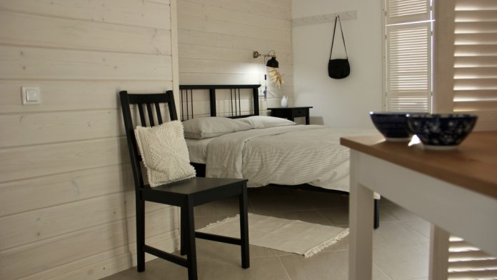 Семейный номер-студия отлично подходит для троих гостей. Терраса на входе и балкон в противоположной стороны. Большие панорамные окна всегда наполнят номер светом, а деревянные ставни позволят выспаться. Конечно же, удобные кровати, мягкие кресла и садовая мебель на террасе дадут почувствовать себя максимально комфортно.