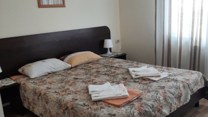 В номере может быть двуспальная( блок-матрас слитный или раздельный) или 2 раздельные кровати.