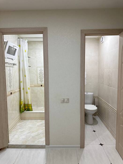 Наличие пяти полноценных спальных мест (две двуспальные и одна односпальная кровати) делает апартаменты универсальными. Свежий капитальный ремонт 2022 года и застекленный жилой балкон создают приятную атмосферу чистоты и домашнего уюта. Раздельный санузел является весомым преимуществом для многоместного размещения, сокращая время на утренние сборы.
