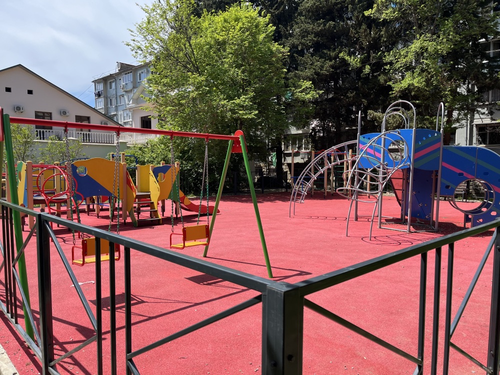 Для семей с детьми: во дворе оборудована современная детская площадка.