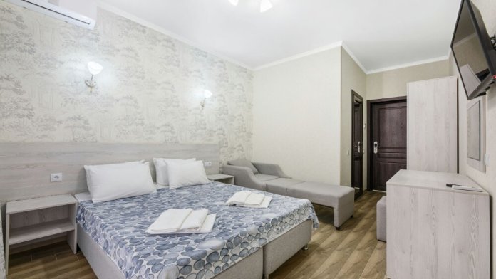 В номере: двуспальная кровать, односпальная кровать, или раскладной кресло.