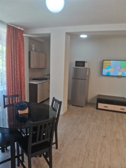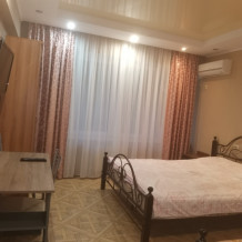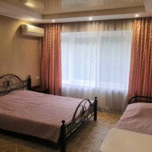 Двухкомнатные апартаменты в пентхаусе (1 шт. 60 кв) - В спальне: двуспальная кровать, шкаф, тумбочки. В зале: две односпальные кровати, диван-кровать, письменный стол, тумба под TV, обеденный стол., тв с плоским экраном, сплит, туалет\душ в номере, ,двухспальная кровать и две односпальные кровати. Есть так же мини кухня (настольная газовая плитка с одной конфоркой, раковина, мини-холодильник) + обеденный. В номере имеется гладильная доска и утюг.
