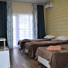 Проживание в 2,3,4-местных номерах (удобства в номере) или блоках 2+2, 2+3 (удобства на блок). Все номера с большими удобными балконами. В каждом номере – холодильник и кондиционер. В 2020 году был построен новый корпус повышенной комфортности, 2,3-местные номера «евро».