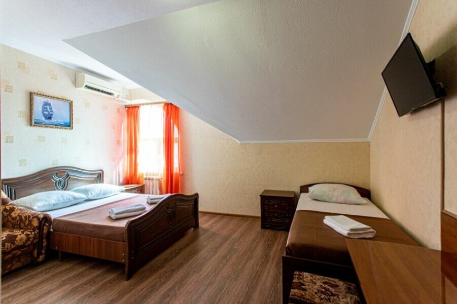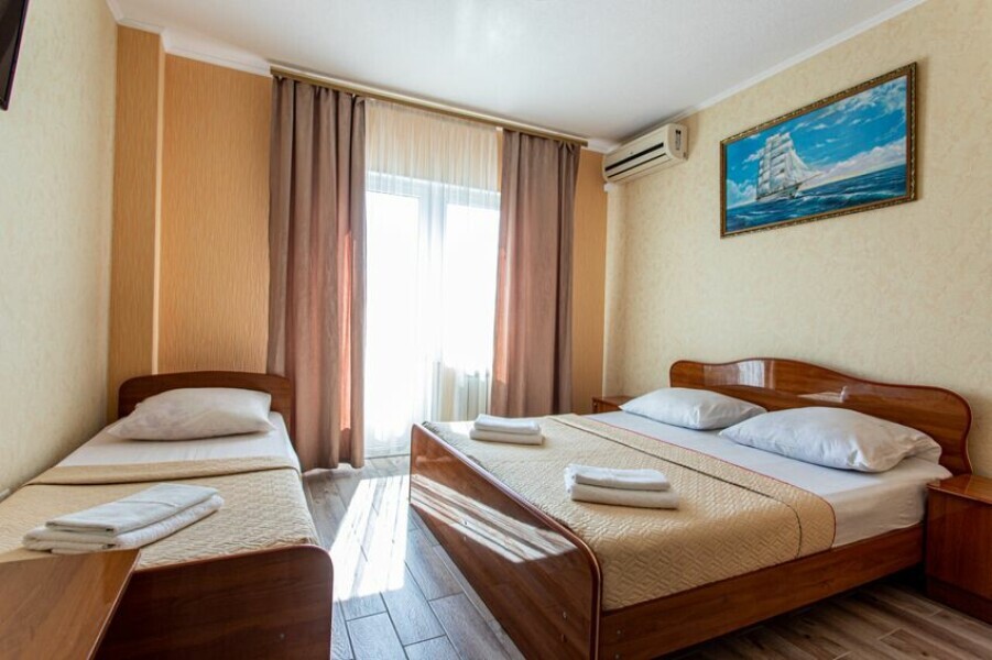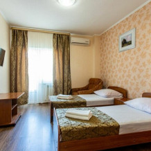 Из удобств, для комфортного проживания есть телевизор, сплит-система, чайник, холодильник, в номере два балкона. Предоставляется постельное белье, полотенца (по количеству гостей) и гигиенические принадлежности. Уборка и смена белья производится один раз в 5 суток и по требованию гостя. Вынос мусора - самостоятельный.
