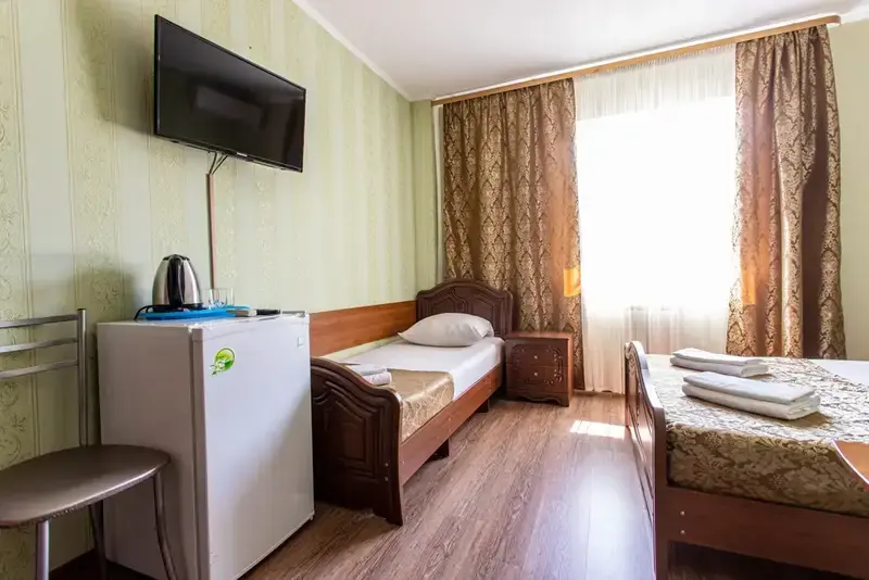 Номера в гостевом доме со всеми удобствами. Каждый оснащён: сплит‑системой; ЖК‑телевизором; холодильником; электрическим чайником; комплектом мебели; душевой кабиной и санузлом.