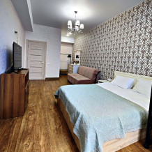 Расположение квартиры также не оставит вас равнодушными. Всего в 5 минутах пешком находится крупнейший городской парк Европы, где можно гулять на свежем воздухе или заниматься спортом. Вокруг вас — санатории, магазины и остановки общественного транспорта, что делает ваше пребывание здесь максимально комфортным.