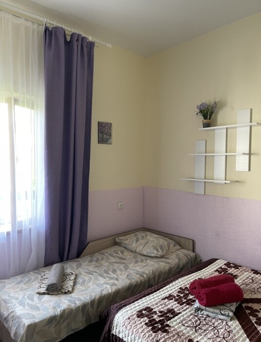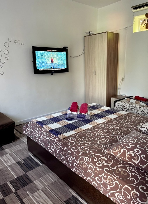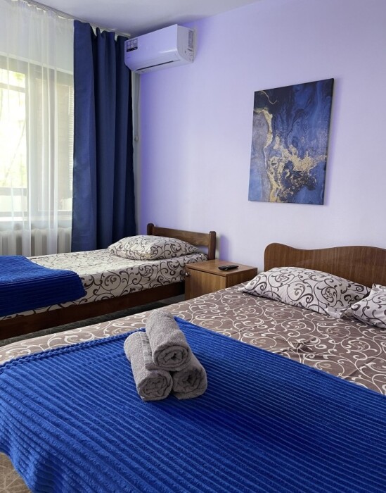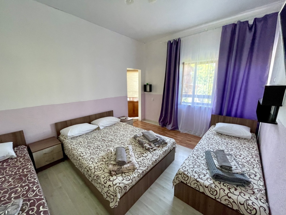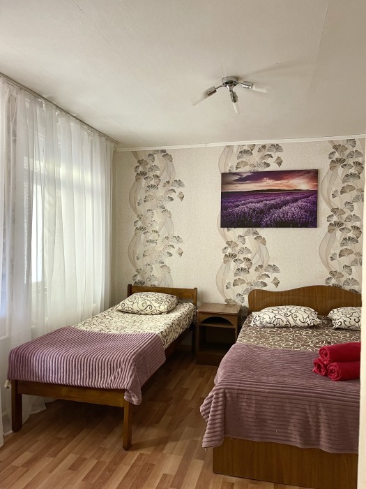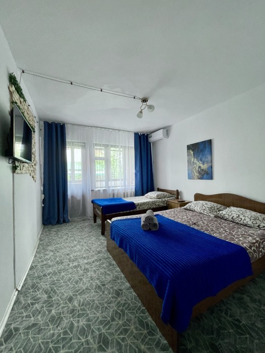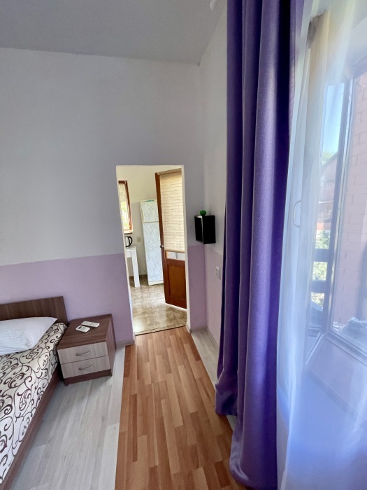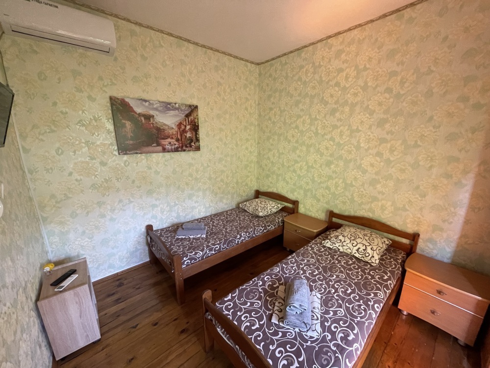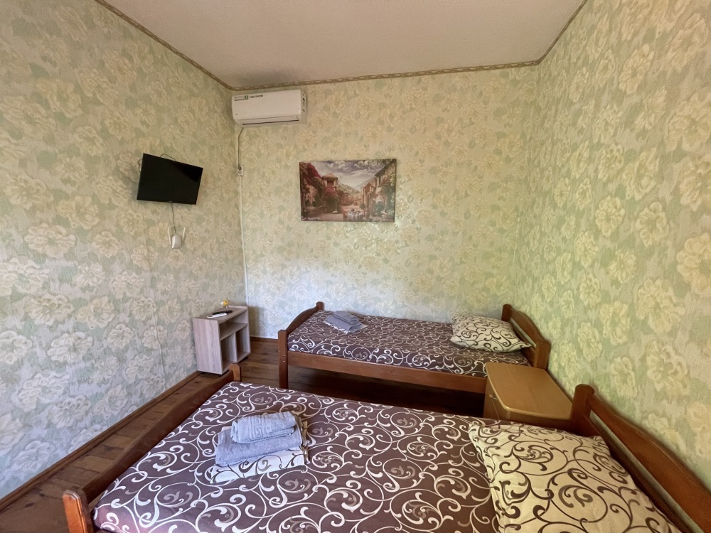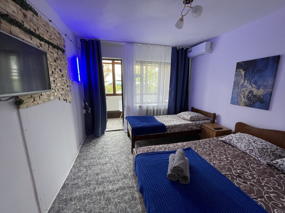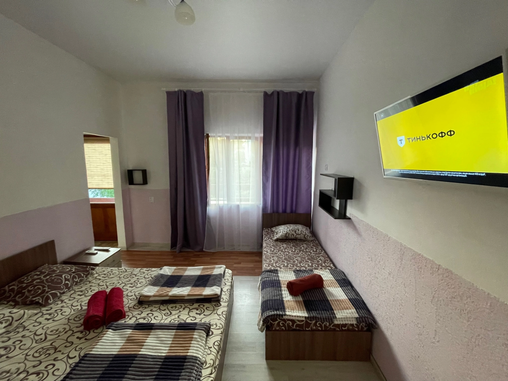 Крыло под ключ для большой семьи или двух пар. Это отдельный вход и две отдельные комнаты соединены коридором. В каждой комнате двухспальная кровать, односпальная, тв, сплит-система, балкон. Удобства на эти 2 комнаты: душ, туалет, холодильник, фен, электрочайник, и вай-фай.