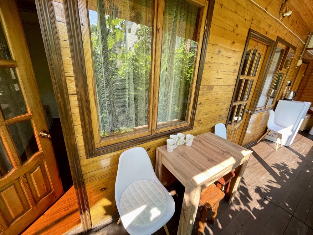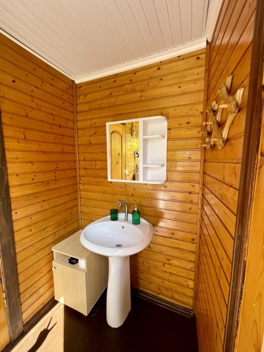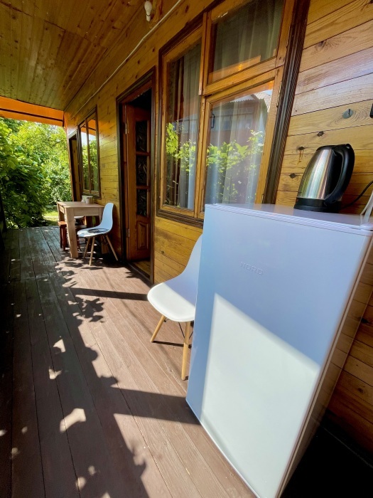 Деревянный коттедж на 4 человек. В коттедже 2 комнаты, в каждой Тв, сплит-система. В самом коттедже : раздельный туалет и душ, фен, холодильник, электрочайник, своя беседка. Сдается под ключ.