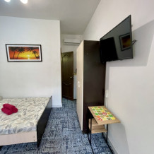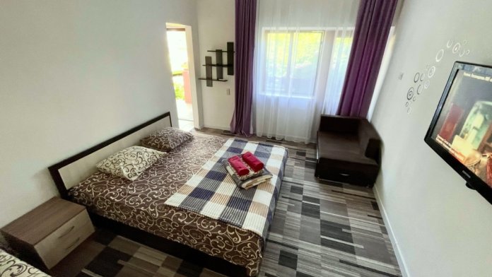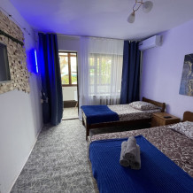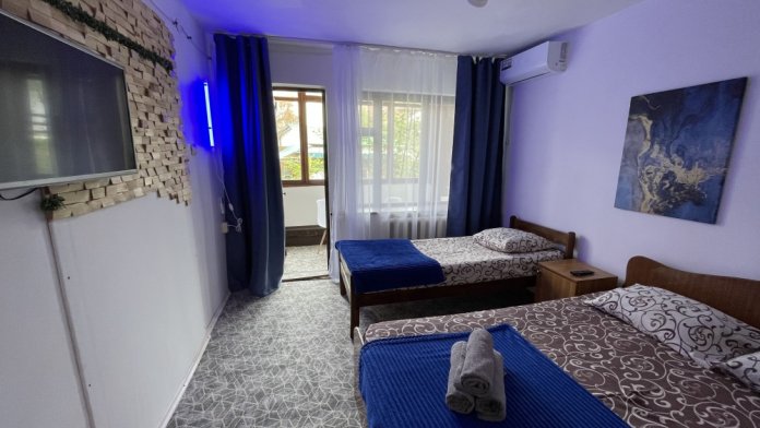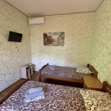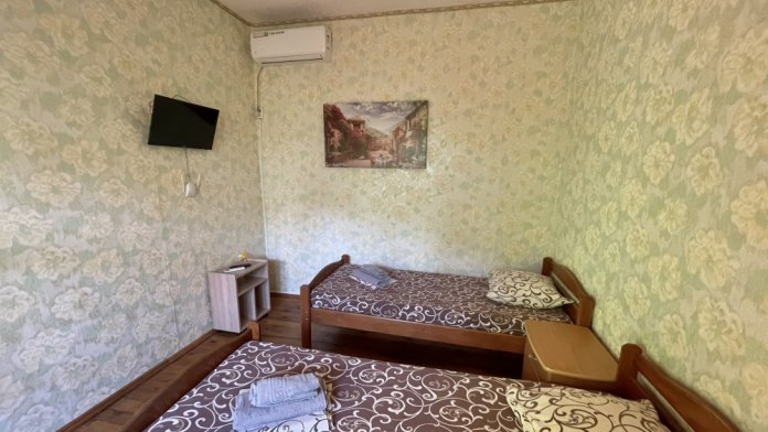 Крыло под ключ для большой семьи или двух пар. Это отдельный вход и две отдельные комнаты соединены коридором. В каждой комнате двухспальная кровать, односпальная, тв, сплит-система, балкон. Удобства на эти 2 комнаты : душ, туалет, холодильник, фен, электрочайник, и вай-фай.