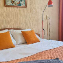 Апартаменты после ремонта, имеют отдельный 3-х метровый балкон, находятся на огороженной зеленой территории (бывший пансионат) с зоной отдыха: беседки, качели, детская площадка, зона барбекю. На территории работает кафе/столовая ( решает вопрос c питанием) . Апартаменты с санузлом ( гор/хол вода круглосуточно). Кондиционеры прошли плановую обработку. Телевизор. В номере кровать ( 140*1950 + ортопедический матрас и еврораскладушка с ламелиями +7см матрас, Шкаф для одежды, комод, журнальный стол