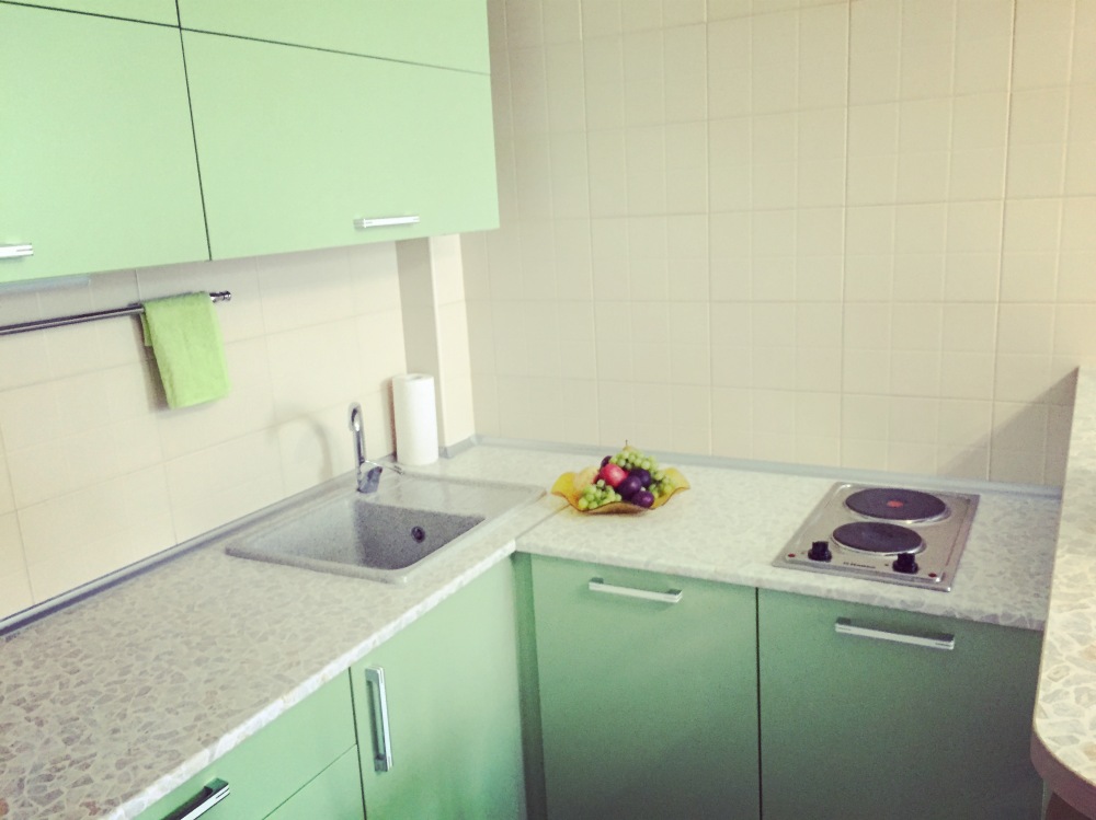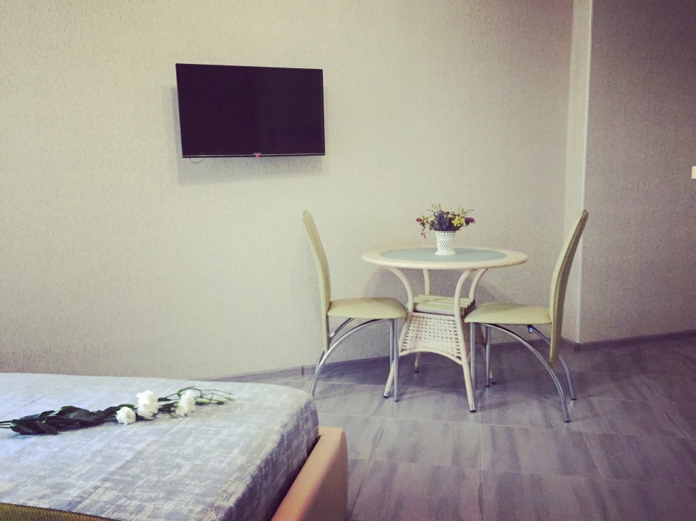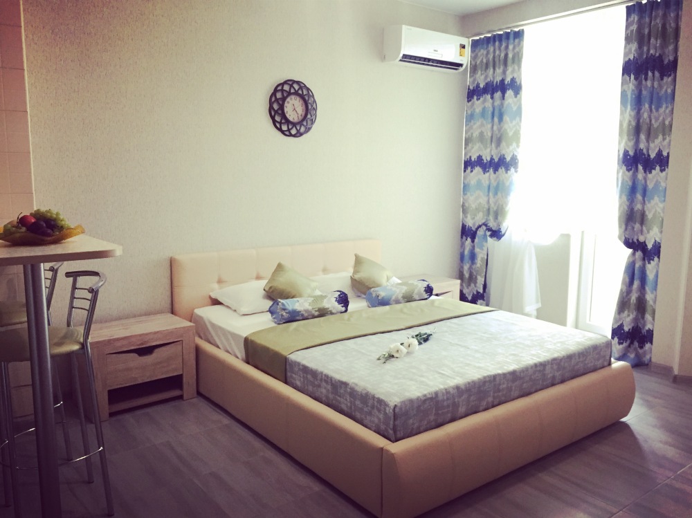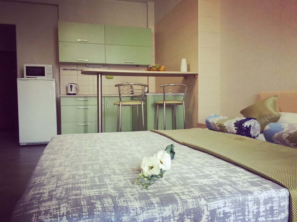 Вашему вниманию предлагается квартира-студия после ремонта, которая может вместить до 3 человек. В большой комнате-студио находится кухня, стол, телевизор и большая удобная двуспальная кровать.