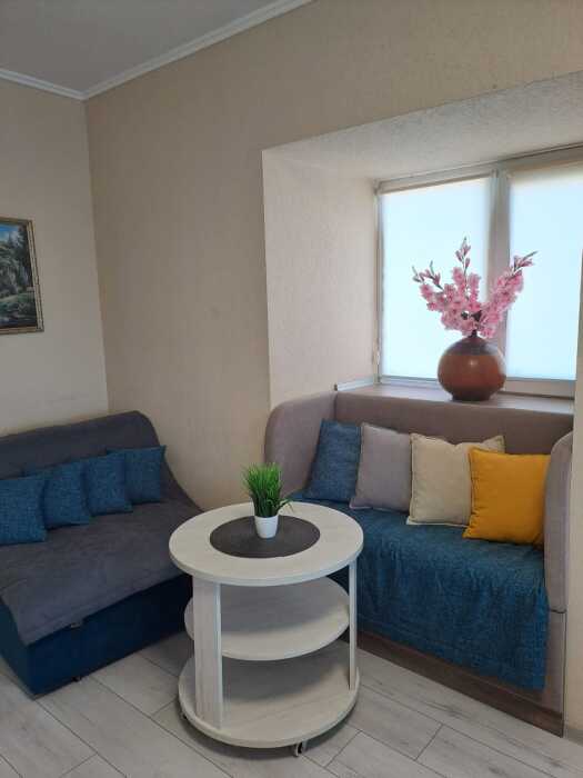 В Вашем распоряжении однокомнатные апартаменты с балконом и видом на море. В которых могут проживать до 3-х гостей. В номере ванная комната с душем, туалет, фен, двуспальной кроватью, диван-кроватью, журнальный столик, трюмо с зеркалом, постельное белье, полотенца, широкоформатным телевизором с кабельными каналами, шкаф, кондиционер, автономное отоплением, wi-fi, мини-кухня (стол с табуретками, эл.чайник, микроволновая-печь, холодильник, столовые приборы, эл.плита по требованию).