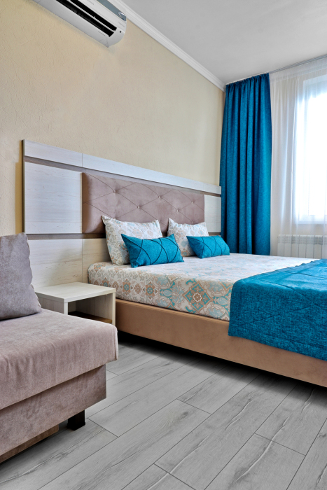 К Вашим услугам 2-комнатные апартаменты с балконом и видом на море. В которых могут проживать 4 гостя +1 доп. место. В номере ванная комната с душем, туалет, фен, полотенца, одноразовые средства личной гигиены, двуспальной кроватью с прикроватной тумбочкой, диван-кровать и кресло-кровать, трюмо с зеркалом, журнальный столик постельное белье, 2 телевизора с плоским экраном и кабельными каналами, шкаф, 2 кондиционера, автономное отопление, wi-fi, мини-кухня (выдвижной обеденный столик, табуретки, эл.чайник, микроволновая печь, холодильник, столовые приборы, эл. плита по требованию).