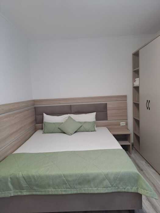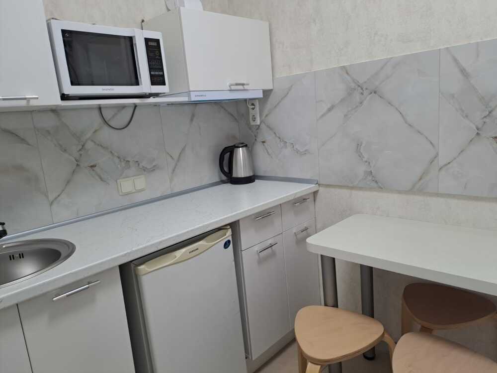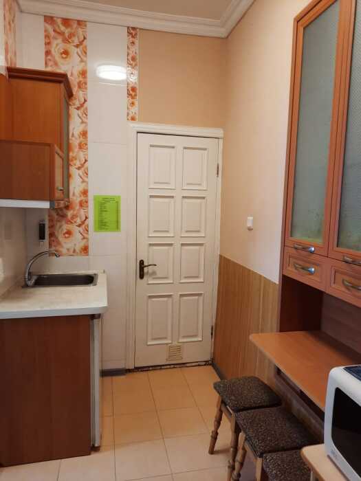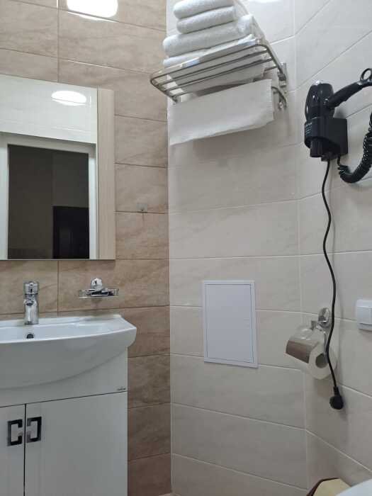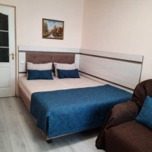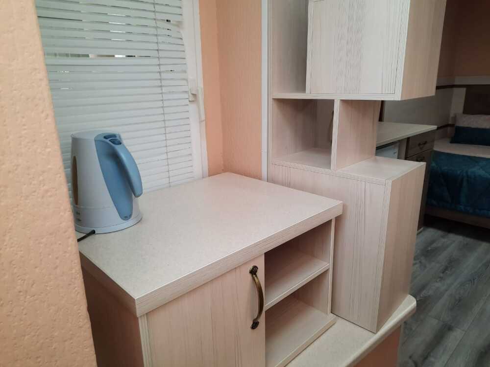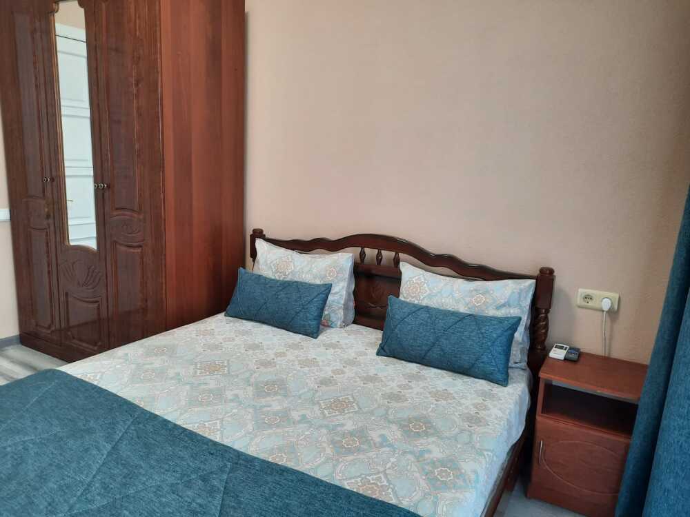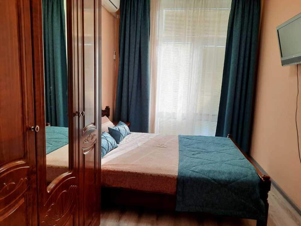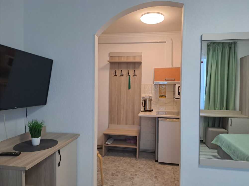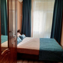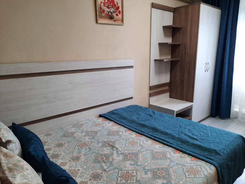 В Вашем распоряжении однокомнатные апартаменты с балконом и видом на море. В которых могут проживать до 3-х гостей. В номере ванная комната с душем, туалет, фен, двуспальной кроватью, диван-кроватью, журнальный столик, трюмо с зеркалом, постельное белье, полотенца, широкоформатным телевизором с кабельными каналами, шкаф, кондиционер, автономное отоплением, wi-fi, мини-кухня (стол с табуретками, эл.чайник, микроволновая-печь, холодильник, столовые приборы, эл.плита по требованию).