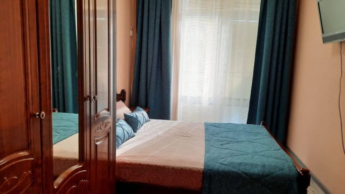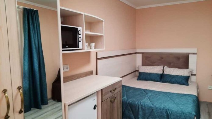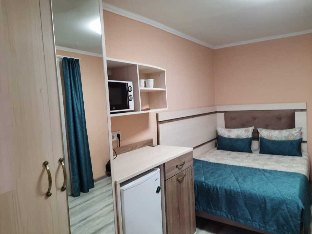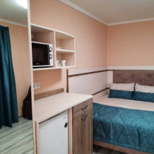 К Вашим услугам однокомнатные апартаменты с балконом и видом на море. В которых могут проживать до 3-х гостей. В номере ванная комната с душем, туалет, фен, одноразовые средства личной гигиены, двуспальной кроватью, диван-кроватью, журнальный столик, постельное белье, полотенца, широкоформатным телевизором с кабельными каналами, комод, зеркалом, шкаф, кондиционер, автономное отоплением, wi-fi, мини-кухня (стол, табуретки, эл.чайник, микроволновая-печь, холодильник, столовые приборы, эл.плита по требованию ).
