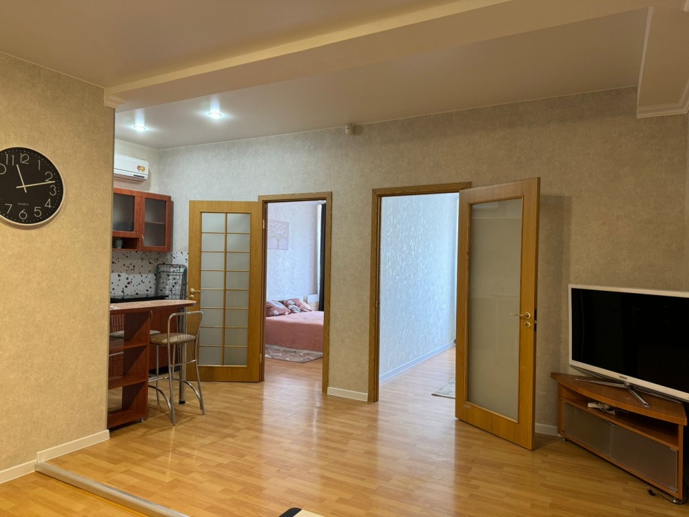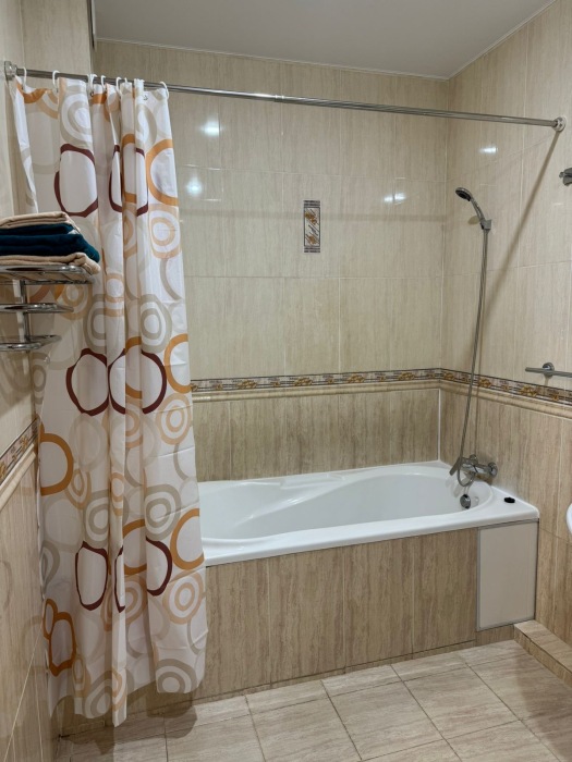 Квартира с новой мебелью и всем необходимым для комфортного отдыха: кухня (имеется вся необходимая посуда), ванная комната, две двухспальные кровати и раскладной диван, кондиционер, телевизор с кабельным ТВ, Wi-Fi, холодильник, стиральная машина, микроволновка, электрочайник, утюг, гладилка, сейф, шкаф для одежды.