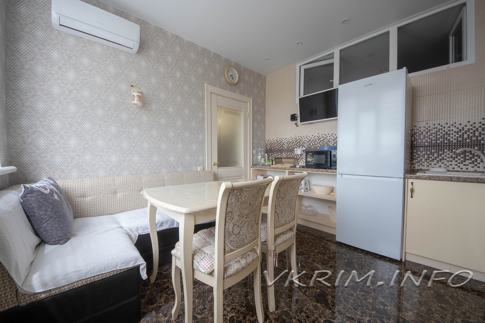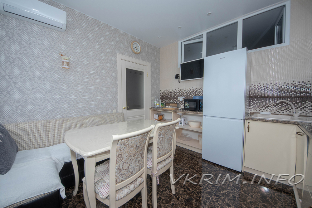 - Квартира оборудована современной кухней, ванной комнатой, мебелью, комфортными спальными местами, необходимой бытовой техникой а также посудомойкой и двумя кондиционерами.