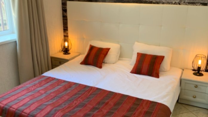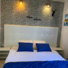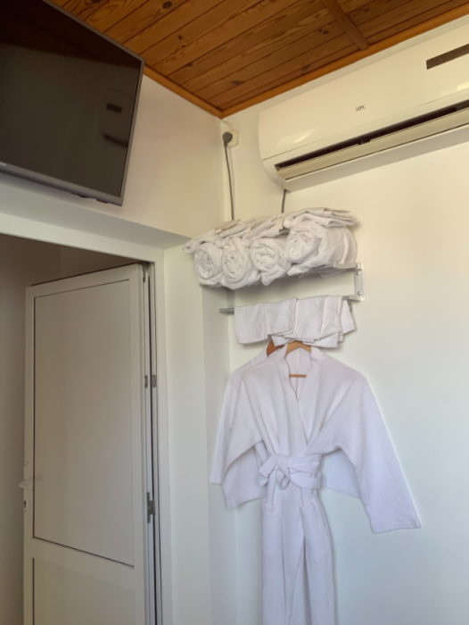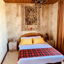 В гостевом доме четыре апартамента на 1 или 2 этаже на выбор. У каждого апартамента отдельный вход и небольшая терраска. В каждом апартаменте две смежные спальни, кухня-гостиная, санузел с тропическим душем. Есть отдельный двухэтажный домик для семьи или компании. На первом этаже два санузла, кухня-гостиная, сейф, диван кровать, детский уголок, телевизоры и кондиционеры на каждом этаже. На втором этаже спальня с кроватью кингсайз. Белое постельное белье страйп-сатин. Косметические принадлежности, по три полотенца для каждого гостя, пляжные полотенца, полотенце для ног, халаты, тапочки. Приветственные чайный набор, кофе, питьевая вода.