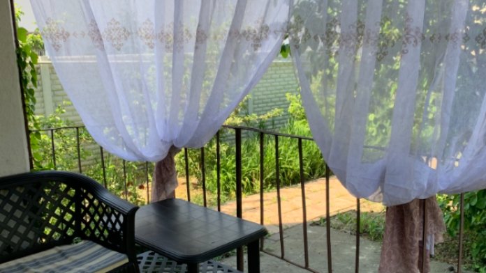 Во дворе, прекрасный зелёный живописный сад, большая бесплатная закрытая парковка, несколько зон отдыха, мангальная зона, где можно приготовить шашлыки и удобно расположиться на свежем воздухе.