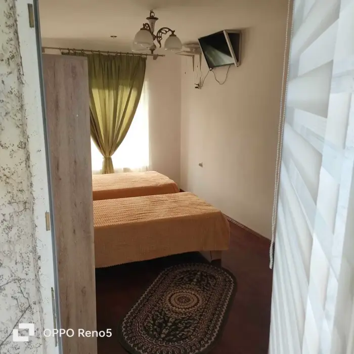 В номере: сплит-система, спутниковое TV, Wi-Fi, холодильник, микроволновая печь, электрический чайник, набор столовых приборов, набор полотенец, постельное белье, сушилка для белья, кровати, прикроватные столики, шкаф,стол.