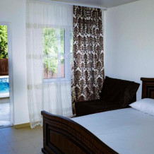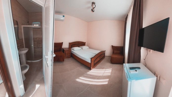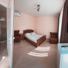 В числе удобств апартаментов – 1 комната - 4 спальных места, телевизор , кондиционер, холодильник, шкаф. ванная комната душ кабина, умывальник, санузел.