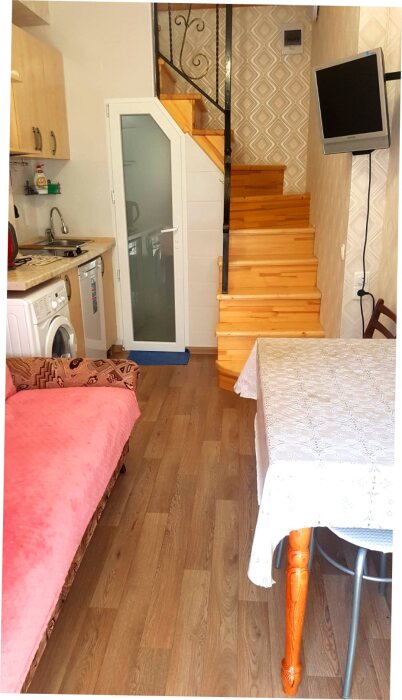 Все принадлежности прилагаются (посуда, постельное белье, полотенца, утюг), а также чистота и уют. Есть все необходимое для отдыха.